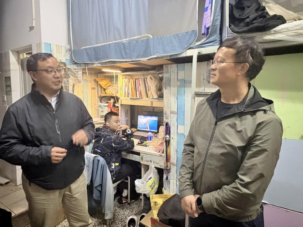 院领导和老师们先后走访了东区三栋女生公寓和东区九栋男生公寓。走访中细致查看宿舍居住环境,关切询问 “住宿是否习惯”“学习生活有无困难”,叮嘱大家注意用电安全、保持宿舍整洁,同时认真倾听对学院工作的意见建议,与同学们进行了亲切而深入的交流。