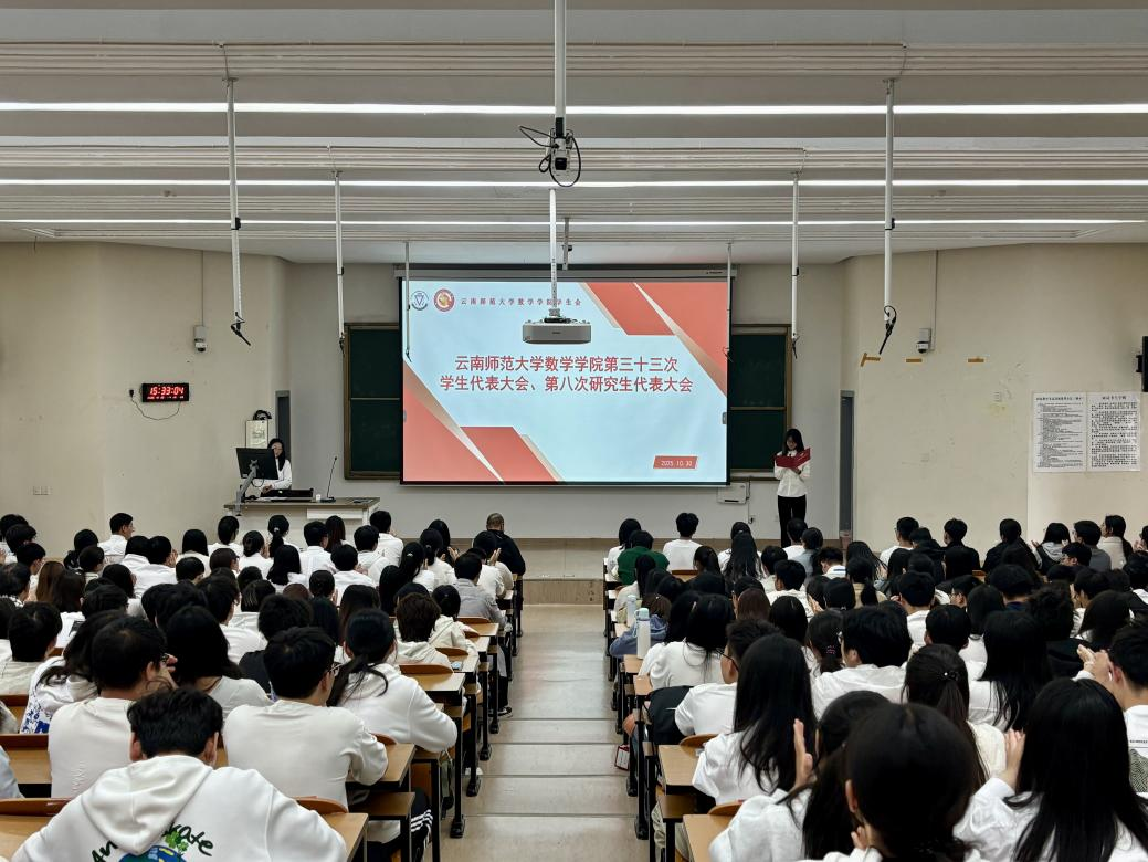 2025年10月30日下午,云南师范大学数学学院第33次学生代表大会暨第八次研究生代表大会隆重举行。学院党委副书记段剑金、团委书记崔艺瑞莅临现场指导,229名学生代表齐聚一堂,共商学院发展与学生成长。