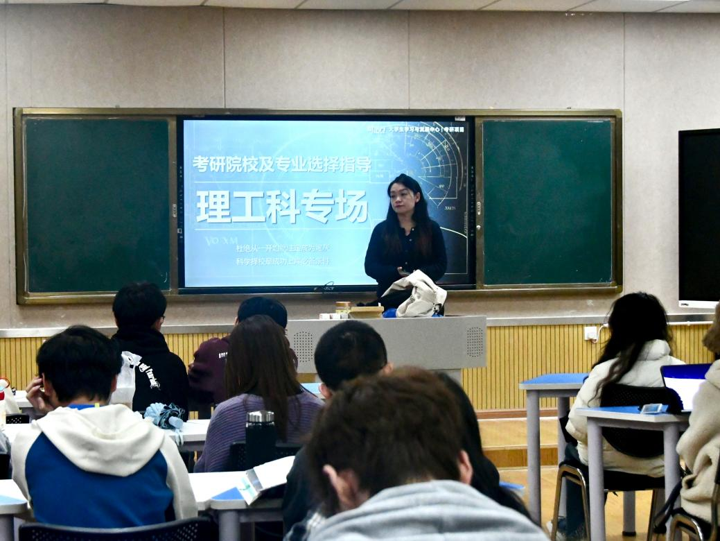 为帮助同学们们更清晰地权衡升学与就业路径,陆洁还对比分析了国考、省考与考研的上岸难度。通过具体数据测算,为同学们的毕业去向选择提供了直观参考依据。此外,陆洁还针对 “少数民族骨干计划” 进行了详细解读,客观分析了以少数民族身份报考的优势与注意事项。围绕 “院校及专业选择” 这一核心问题,她结合理工科专业特点,从地域分布、院校层次、专业实力、就业前景等维度给出具体建议,强调科学择校的重要性,帮助同学们们建立理性的择校思维。最后,针对考研英语备考的重点难点,以及部分同学关注的跨专业考研复习流程、专业适配性等问题,她也逐一分析,分享了实用的备考方法与规划建议。