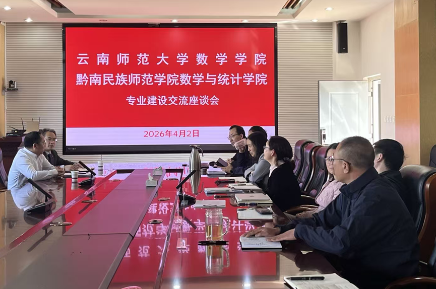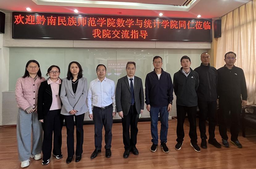 为深化校际合作、共促数学学科高质量发展,4月1日至3日,黔南民族师范学院数学与统计学院党委书记孟钦武、院长余泉带领调研组一行,莅临我院开展专题调研。双方围绕学科建设、专业发展、师资队伍建设及人才培养方案优化等核心议题,开展深入交流研讨,携手探索数学学科高质量发展新路径。